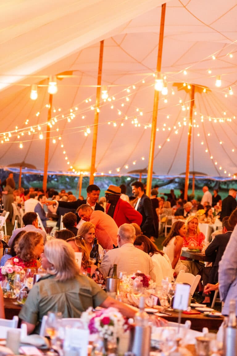 The evening begins at 6:00 PM under the tent on the Manor House lawn with refreshing cocktails, a raw bar, freshly made sushi, and an array of seasonal small bites.
